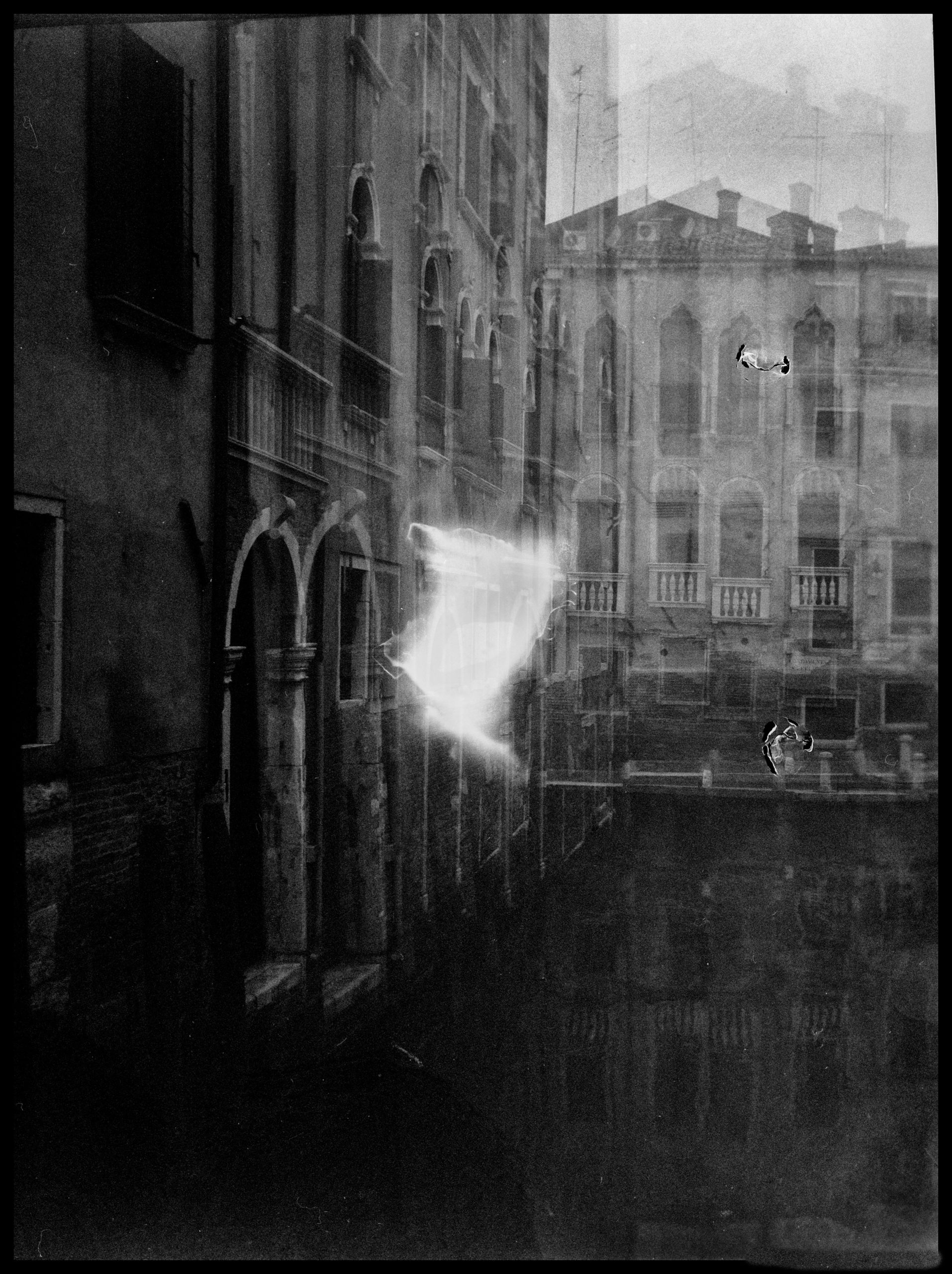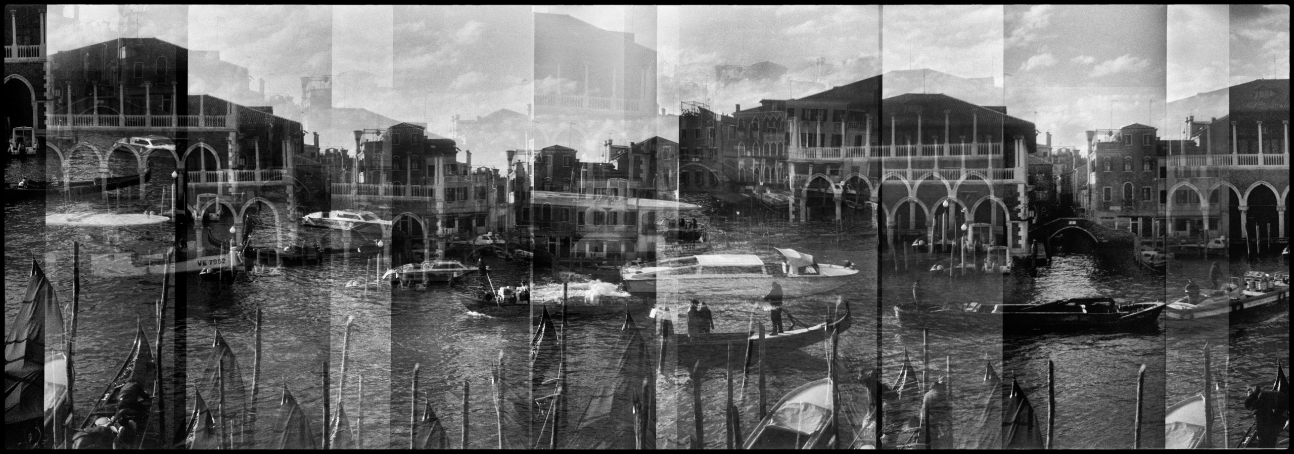 Gli fa eco la “Venezia sospesa” di Alessia Bonannini, sospesa tra due tipi di luce diversa, le barche che ondeggiano al movimento dell’acqua. “Venezia sospende te”, dice, vacilla continuamente la percezione della città.