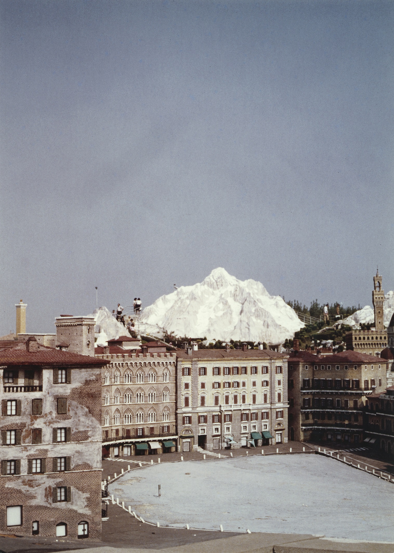Ed è così che nell’ultima sezione della retrospettiva curata da James Lingwood, e distribuita in quattro sale, le proporzioni ridotte dell’identità territoriale italiana ed europea diventano, nella serie “In scala”, lo slancio verso un ironico viaggio nella doppia riproduzione del reale. Il parco L’Italia in miniatura di Rimini che riproduce in riduzione plastica paesaggi e monumenti, diventa per Ghirri un ludico luogo per un gioco di specchi che, attraverso la fotocamera, svela allo spettatore l’artificio, rivelando per esteso la dualità dell’umano e della realtà.